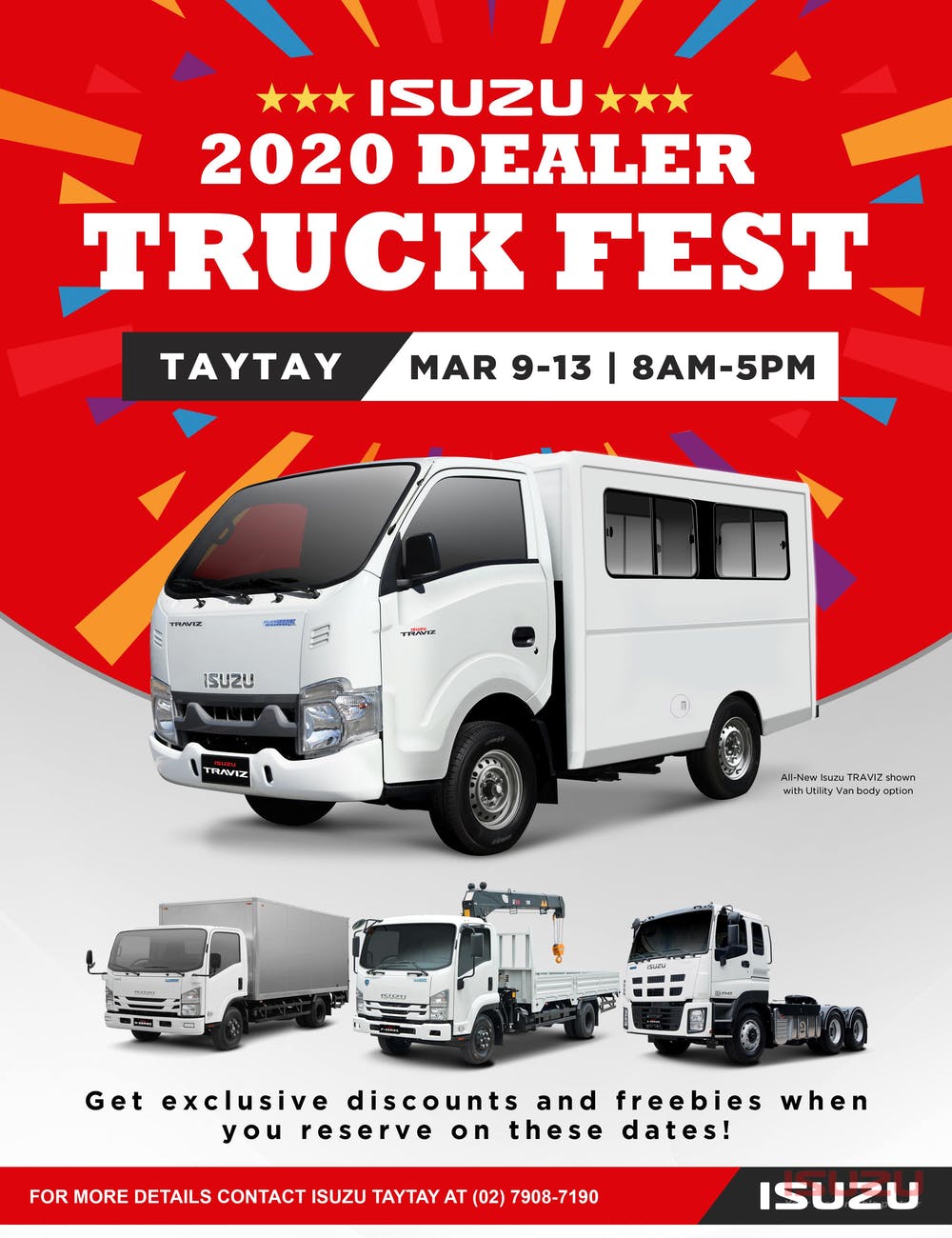 For more details contact Isuzu Taytay at (02) 7908-7190